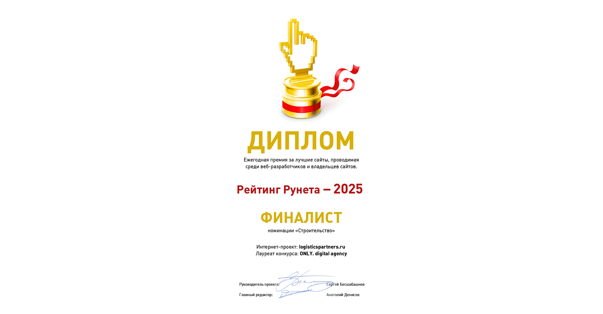 Отдельно поздравляем и благодарим команду Only.digital agency, которая занималась разработкой сайта. Проект стал результатом совместной работы, где особое внимание уделялось структуре, логике и понятной подаче информации с учетом специфики строительной и логистической сфер. Мы рады, что совместная работа получила признание и стала заметной на профессиональном уровне!