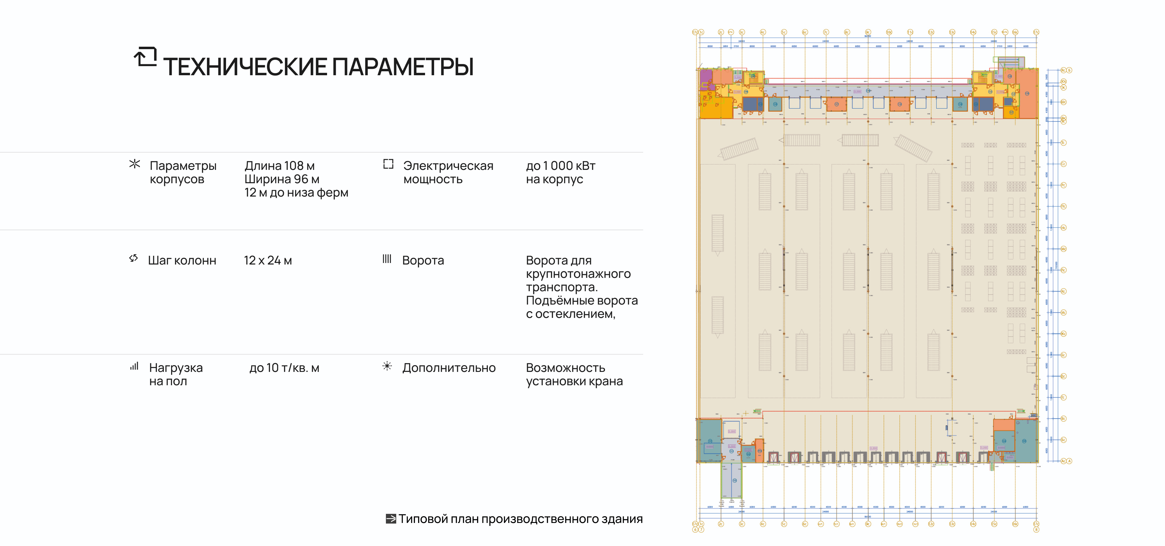 Внутренние планировки универсальны и предусматривают возможность размещения антресолей как дополнительной площади для хранения или вспомогательных функций. В каждом корпусе есть офисные и бытовые помещения, а при необходимости возможна модернизация и реконструкция помещений.